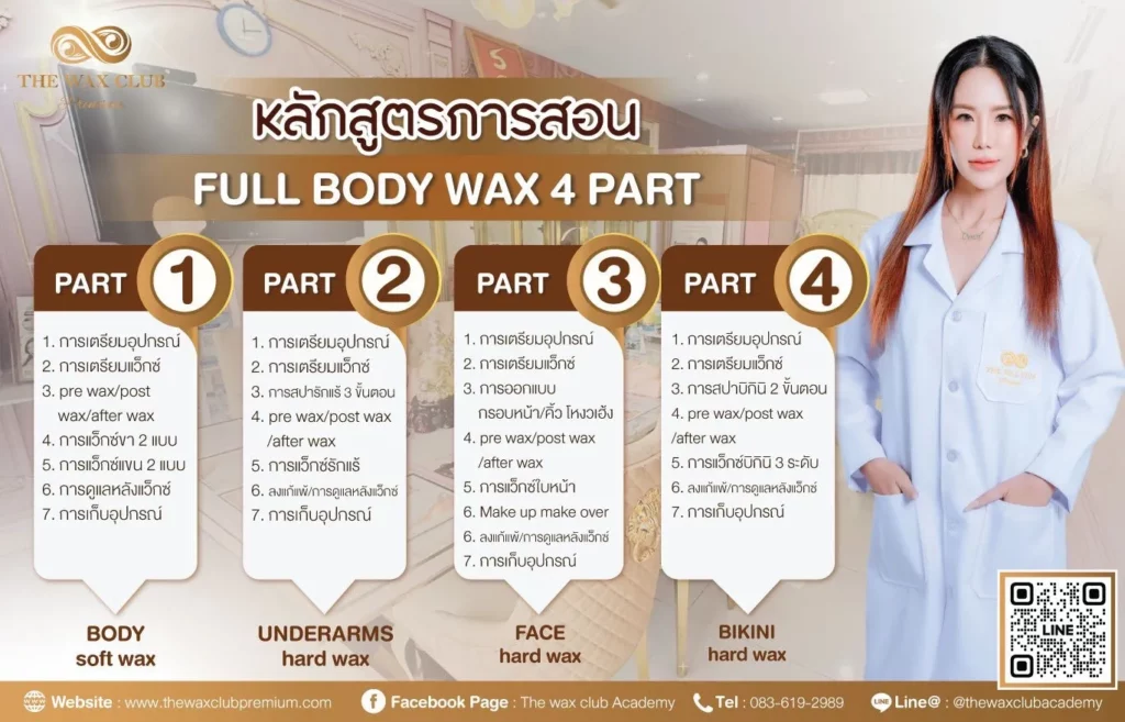 Full body wax หลักสูตร ยกระดับ กิจการ ด้วย เมนู ทำเงิน แว็กซ์กำจัดขนทั่วเรือนร่าง ใบหน้า รักแร้ แขน ขา bikini